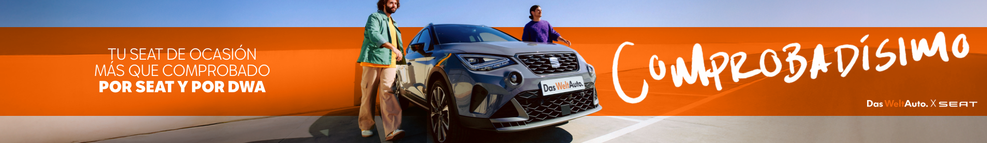 *Bonificación sobre PVP, IVA incluido, para clientes particulares y autónomos en Península y Baleares que financien a través de Volkswagen Bank GmbH S.E (según condiciones contractuales), aplicable a todos los vehículos Das WeltAuto de las marcas SEAT y Volkswagen, con hasta dos años de antigüedad disponibles en la Red Das WeltAuto sujeta a un capital mínimo de 16.000 € y una duración y permanencia mínima de la financiación de 60 meses. Ejemplo de cuota: importe a financiar de 16.000,00€. Sin entrada. 60 cuotas de 347,32€/mes. Comisión de apertura al contado: 480,00€ (3,00%). Importe de los intereses 4.103,65€. Coste total del crédito 4.583,65€. Importe total adeudado: 21.319,20€. Precio total a plazos: 21.319,20€. TIN: 8,99%. TAE: 10,74%. Sistema de amortización francés. La oferta incluye Seguro de Protección de Pago Básico opcional y financiado por 735,55€ que no está incluido como gasto en el cálculo de la TAE. La oferta incluye gratis 2 años de Mantenimiento o 40.000km (lo que suceda antes) y Extensión de Garantía de un año sin coste adicional para vehículos financiados con Volkswagen Bank GmbH S.E Incompatible con otras ofertas financieras. Oferta válida para unidades comercializadas hasta fin de Salón VO. Incompatible con otras ofertas financieras.